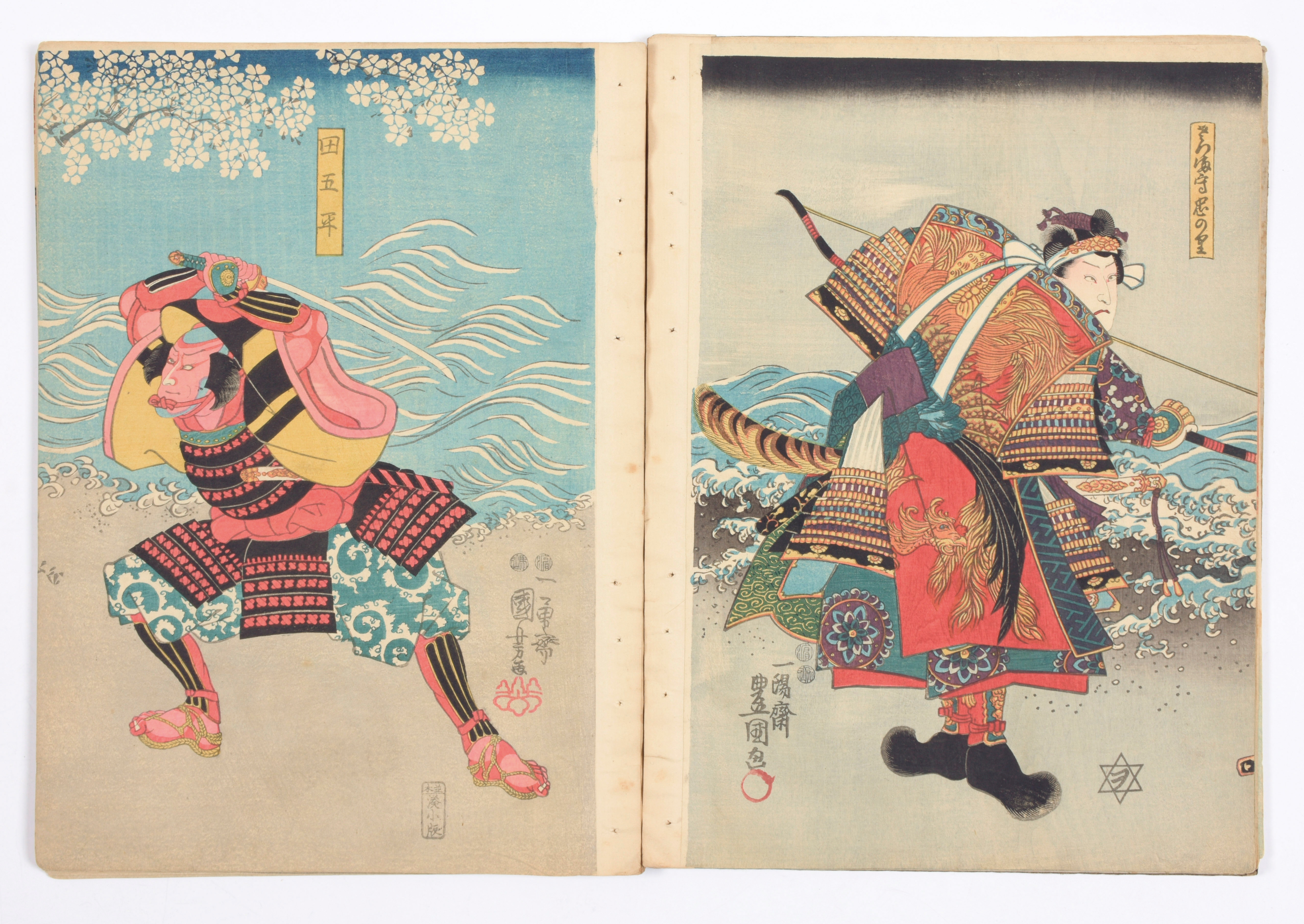 Late 19th c. album with 66 Japanese colour woodblock prints